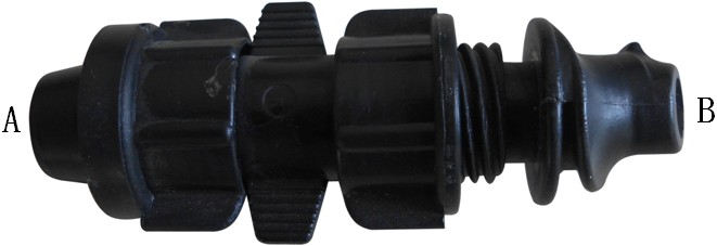 4.将滴管带套入管件B端口,拧紧锁母。